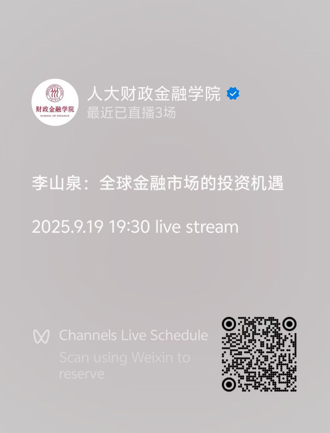Watch via the video account "人大财政金融学院" (RUC School of Finance)